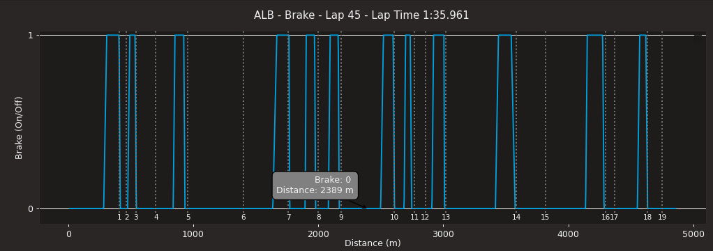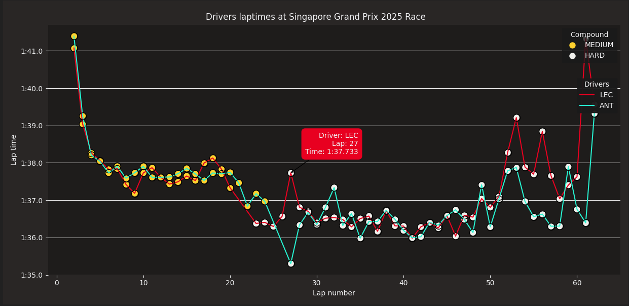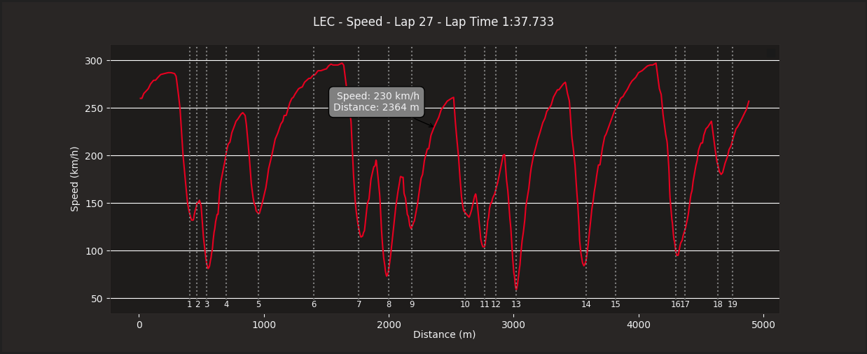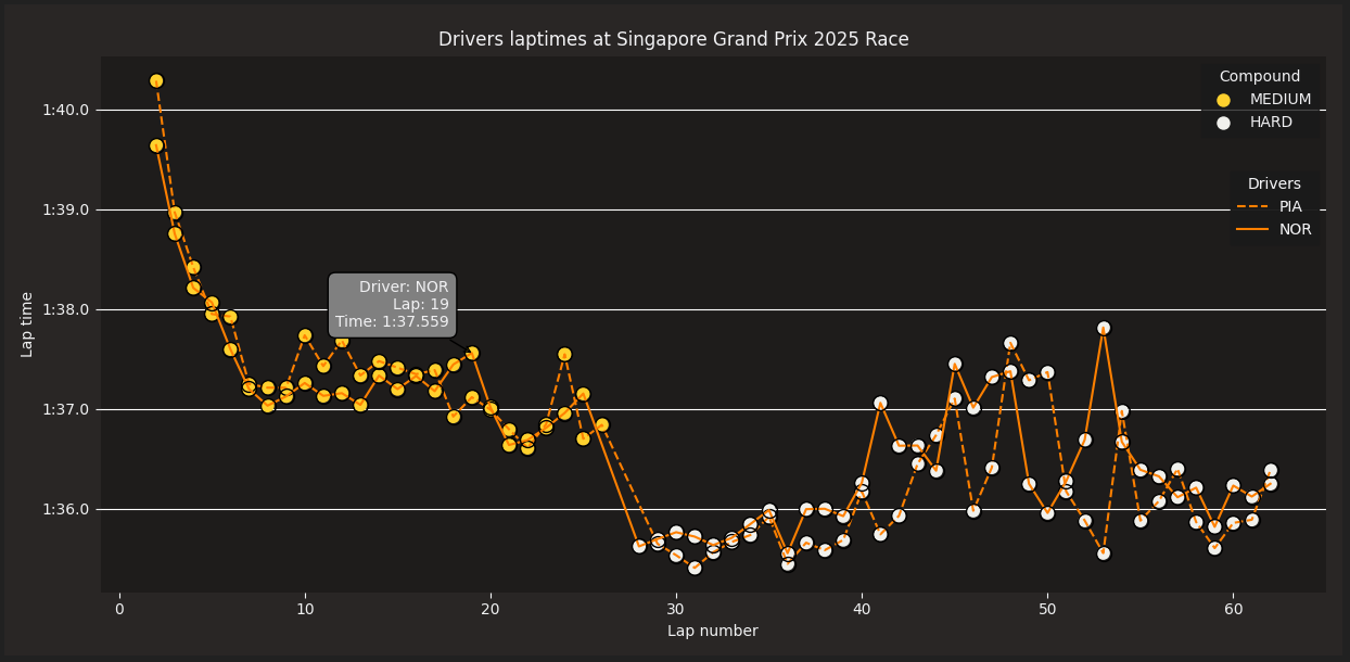 - Features: Detailed graphs, hover annotations, details for individual laps