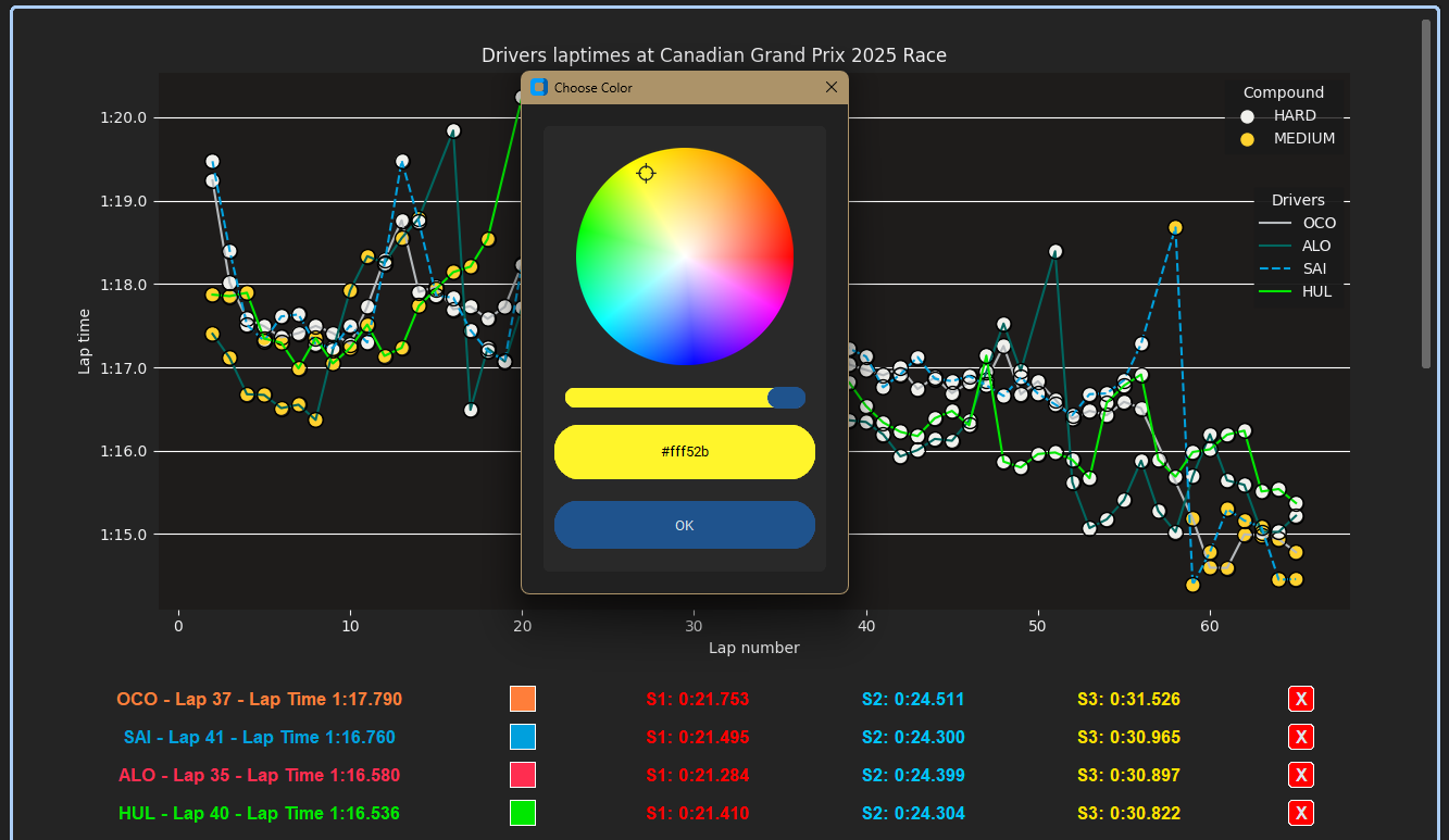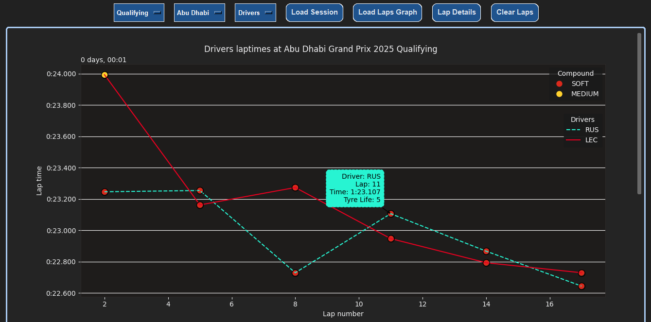 - APIs: FastF1, Tkinter, Matplotlib, MPLCursors...