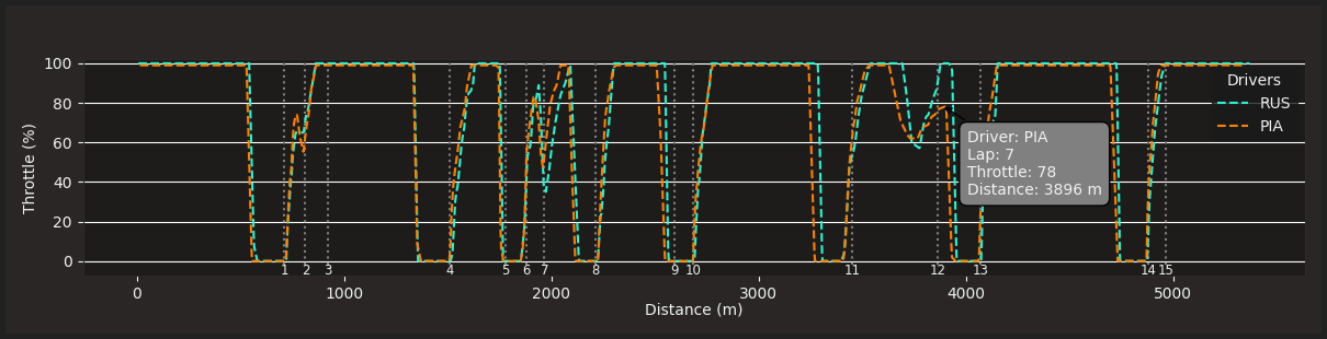 - Features: Detailed graphs, hover annotations, details for individual laps